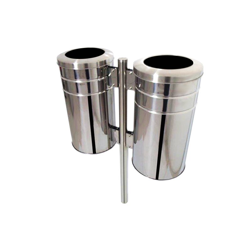 Lixeira Aço Inox Dupla c/ Aro e Poste